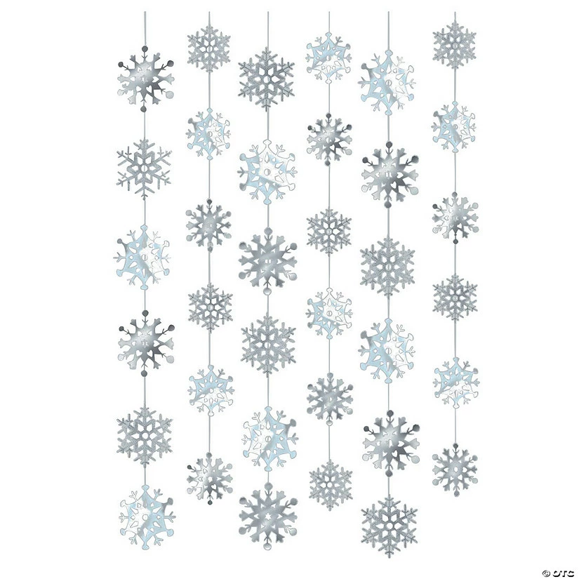 β’ VIBRANT COLORS: The perfect size for any occasion, these hanging snowflakes add another dimension to your party decorations. Take advantage of unused ceiling space to add more color to your party.β’ BUDGET-FRIENDLY DECORATIONS: Add lots of character to the look of Christmas party decorations without spending lots of money. These hanging swirls give you more bang for your buck.β’ QUALITY DECORATIONS: You donβt have to pay a fortune for high quality party decorations! These hanging snowflakes are high quality and look great alongside any other party decorations. β’ CREATIVE USES: Hanging swirls arenβt only for decorations! Keep them on hand for when inspiration strikes to create holiday art projects.Product Description:Go frozen and festive with your holiday party decorations! These hanging snowflake decorations are perfect for using as a door curtain to greet your Christmas party guests and as a photo backdrop in your photo booth. Get into the winter spirit with style and add them to your Christmas decorations!Size: 7 ft.Quantity: 6Material: FoilΒ© OTC