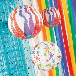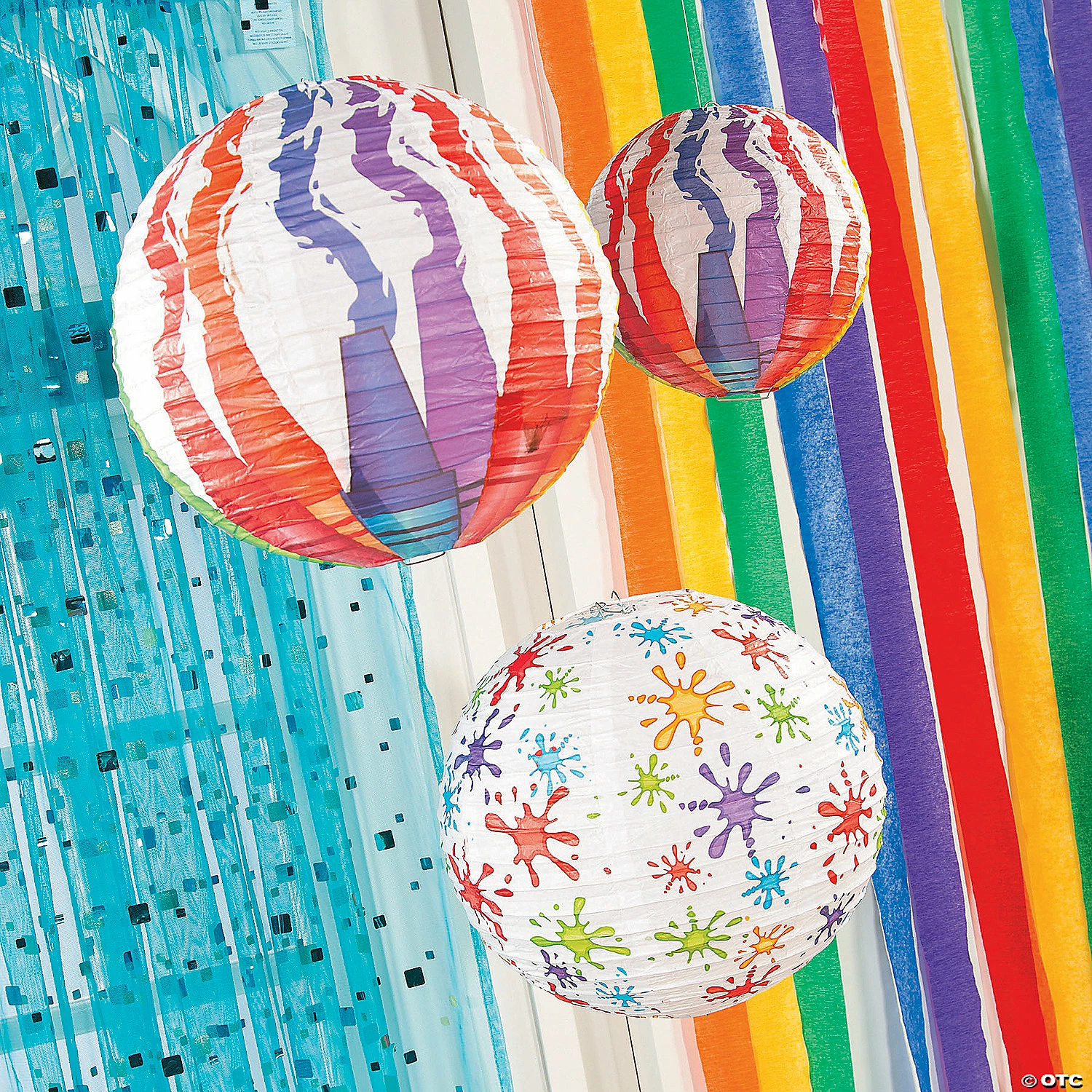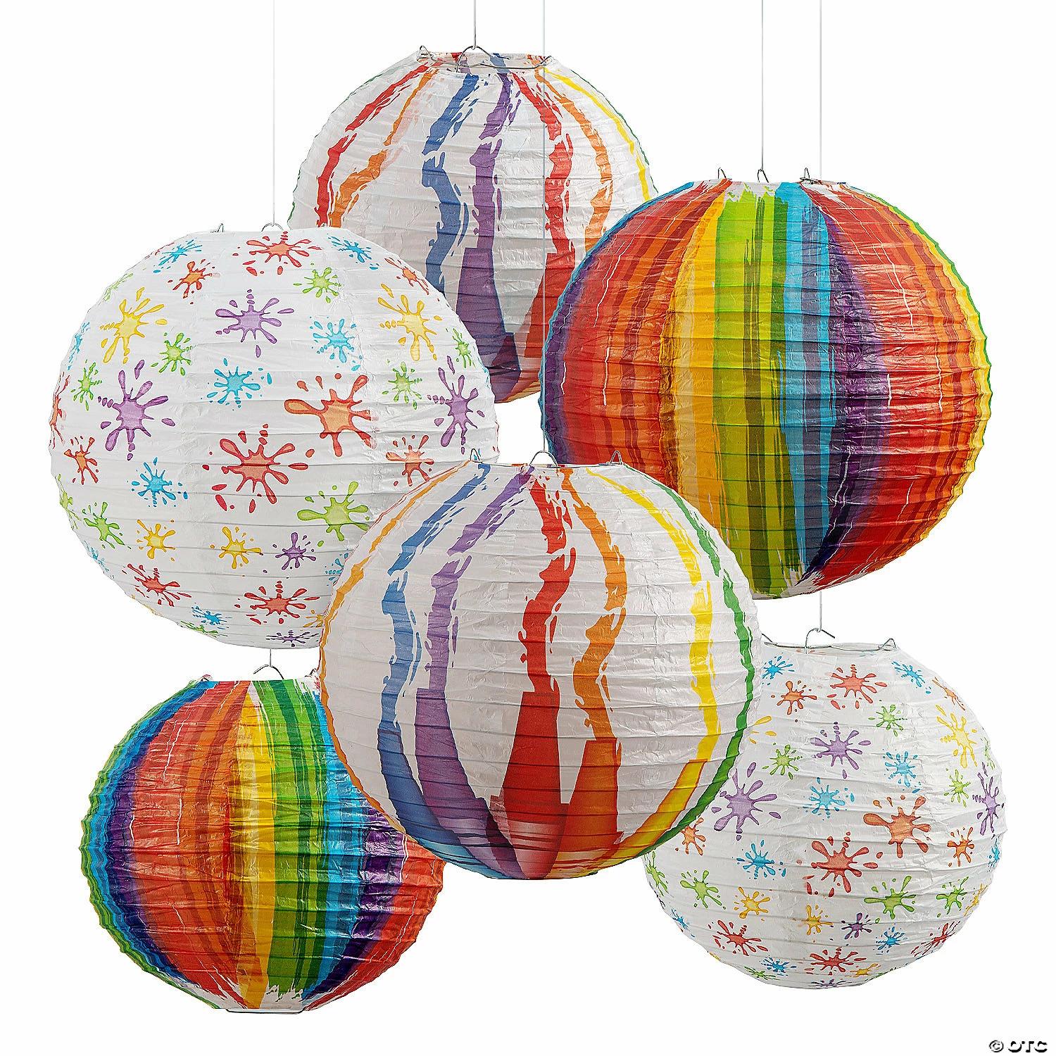 β’ QUALITY DECORATIONS: These sturdy, versatile art palette lanterns can be used time and time again to celebrate any occasion in your life! Mix and match different, solid colors to fit any party theme.β’ VIBRANT COLORS: These artistic lanterns offer a rich, vibrant color that perfectly matches up with your school colors, wedding scheme, or other event color theme. β’ PERFECT FOR ANY EVENT: Add a touch of elegance to art school graduation parties, baby showers, birthday parties and most any other party with these brilliantly colored, reusable party decorations. β’ PARTY SUPERSTORE: Shop Oriental Trading for all of your party supply needs, from decorations to tableware to party favors and more.Product Description:Splashed with patterns of bright colors, these art-inspired tissue paper lanterns are sure to turn some heads during your party. A bright addition to your art party supplies, these hanging lanterns are ceiling decorations that set the mood for a creative celebration. They’re fun classroom supplies that make fantastic classroom dΓ©cor that help inspire children and keep their moods bright. Size: Three each of: 8″ and 12″Shape: Round.Quantity: 6Material: Paper.Includes wire hangers.Simple assembly required.Β© OTC Art Palette Hanging Paper Lanterns