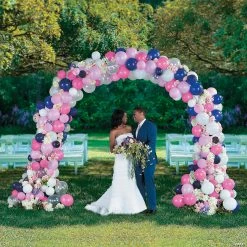 Just add your own balloons to this arch to create an extraordinary decoration that no big event should be without! At 8 ft. x 9 ft., this large metal frame is sure to create an eye-catching spectacle all your guests will enjoy. Perfect for weddings, proms, business banquets or wherever you need a enchanting entryway or focal point, you’ll never go wrong with this Balloon Arch Frame. Requires approx. 100 balloons to fill arch. Assembly required.