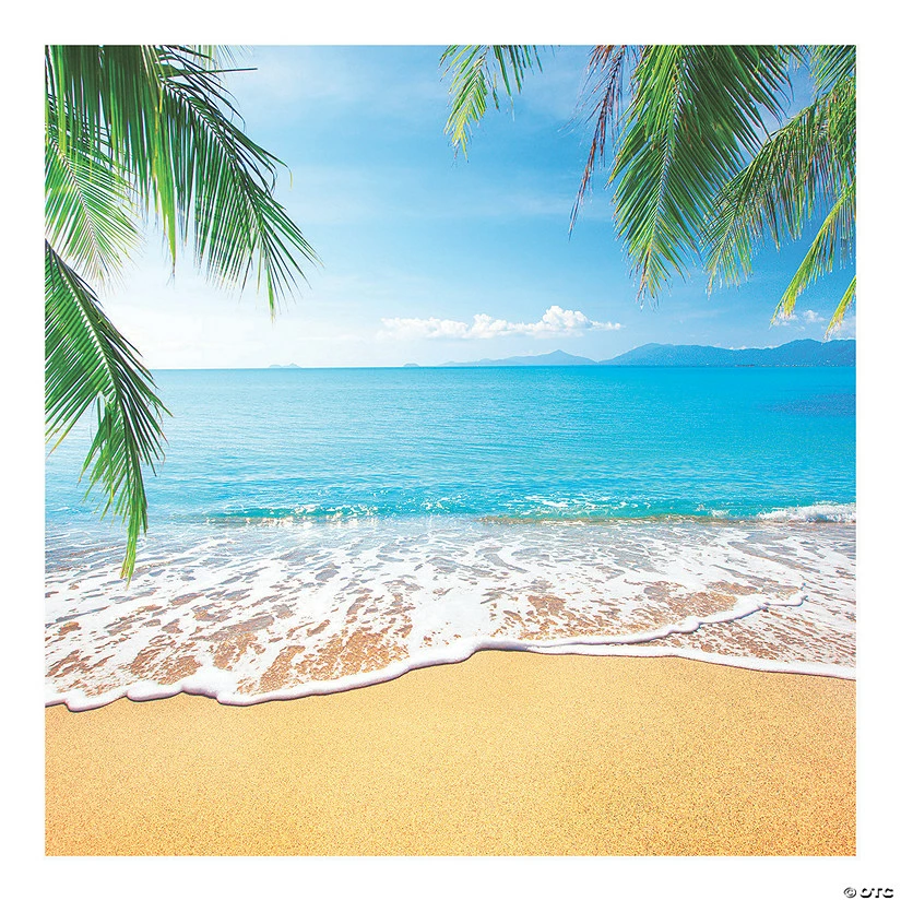Set the scene for some tropical vibes with this Beach Backdrop Banner! Featuring palm trees on a bright, sandy beach with the waves rolling through, it’s a must-have addition to your party decorations! You can use it as a backdrop to your DIY photo booth, too. Plastic. 6 ft. x 6 ft. © OTC