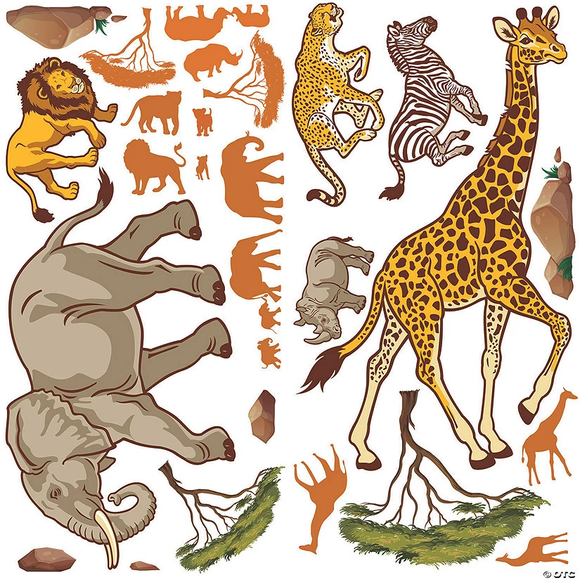 Set the scene for your African Safari VBS theme with these wall decorations. Place them over a backdrop and you’ll find the same types of images throughout all of our African Safari Vacation Bible School supplies. Plastic. Includes 58 pcs. on four 3-ft. x 6-ft. sheets. Individual decorations must be cut out with scissors. Use your own wall adhesive for hanging. ยฉ OTC