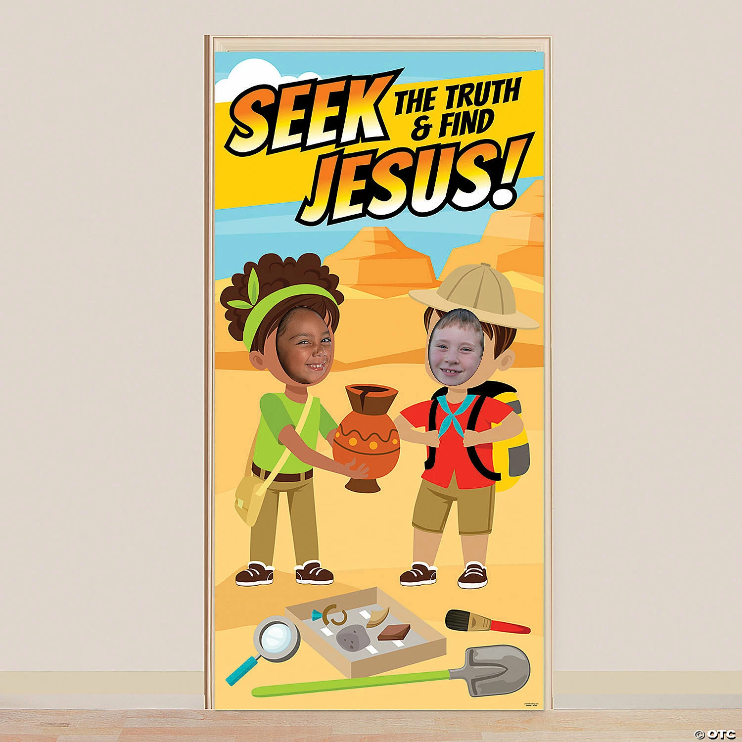 Strike a pose! A fun way to inspire photo ops at your Dig Vacation Bible School theme, this banner features two discoverers out on a dig site! Find more Dig VBS supplies throughout our site for a complete theme for your week-long adventure in faith. Plastic. 3 ft. x 6 ft. with two 6″ x 8 1/2″ face openings. © OTC