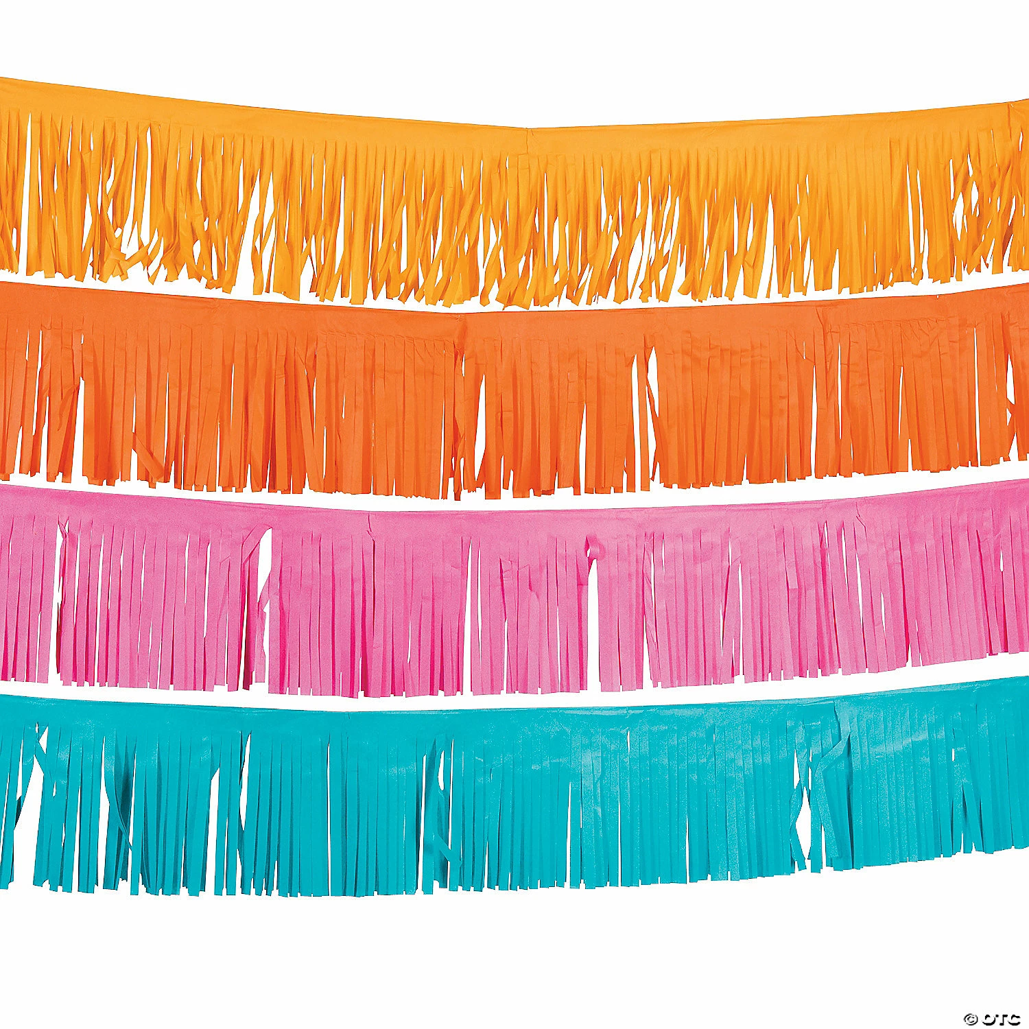 Just hang this Fiesta Fringe Garland around any room to make your guests feel like theyβve entered into a piΓ±ata! In bright and festive colors, this tissue paper fringe gives your celebration a light and playful feel no matter if you hang it on walls, around windows, doors or tables! Paper. (4 pcs. per set) Each different colored piece, 11 ft. 5″; total, 39 ft. Β© OTC