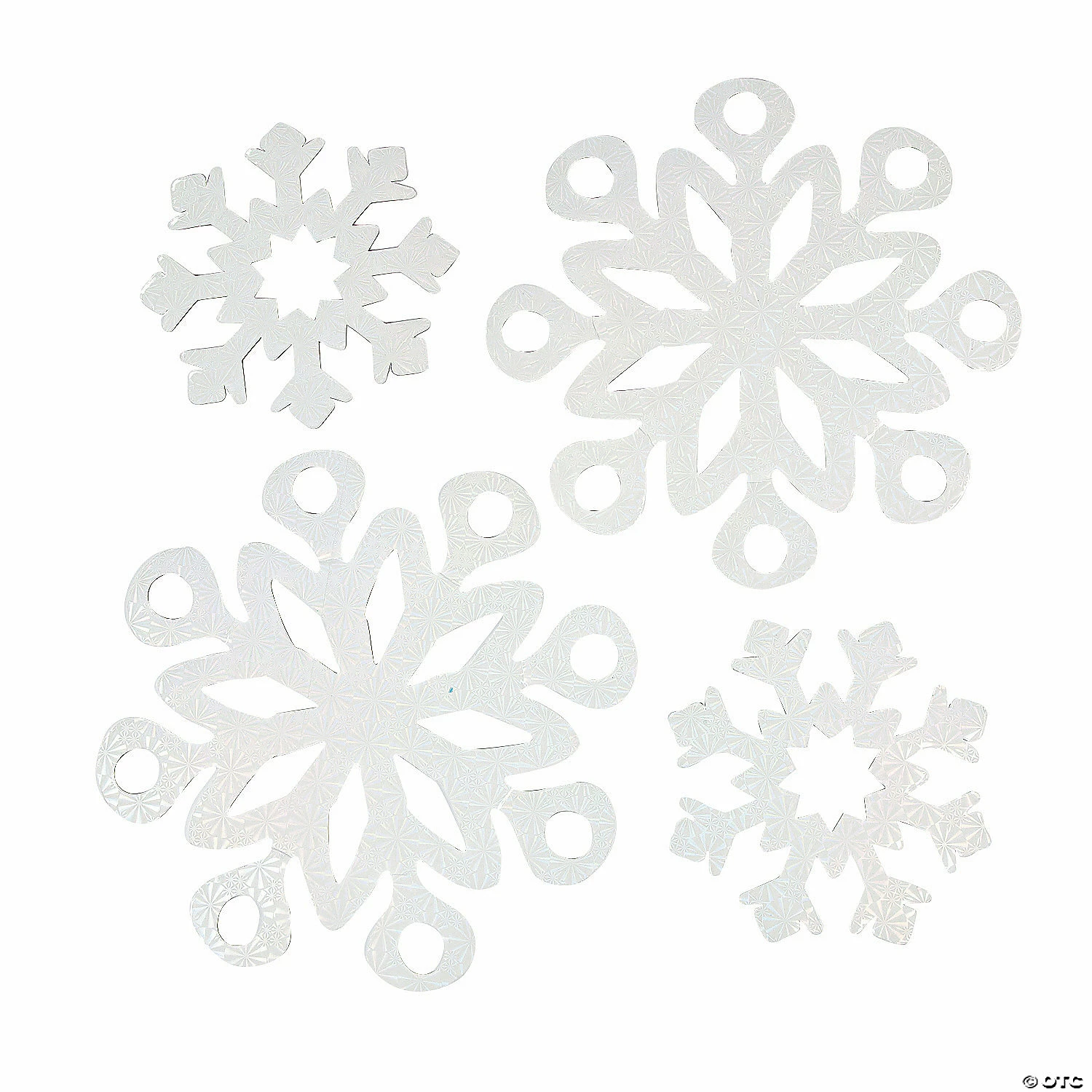 These shimmery snowflake cutouts add an elegant and serene touch to your winter wonderland decor. Use for kids’ craft projects or for Christmas crafts. Tie with silver string and hang from the ceiling for the majestic look of a white Christmas. Cardstock. (6 pcs. per set) 8″ – 13″ © OTC