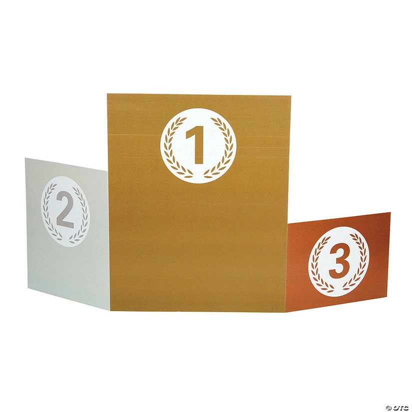 Recognize the winners of your friendly games with this Podium Stand-Up. A fun prop to include in your theme party supplies and World Games decorations, this cardboard stand-up makes a great photo booth prop! 6 ft. x 3 ft. Simple assembly required. One-sided with a brown cardboard back.