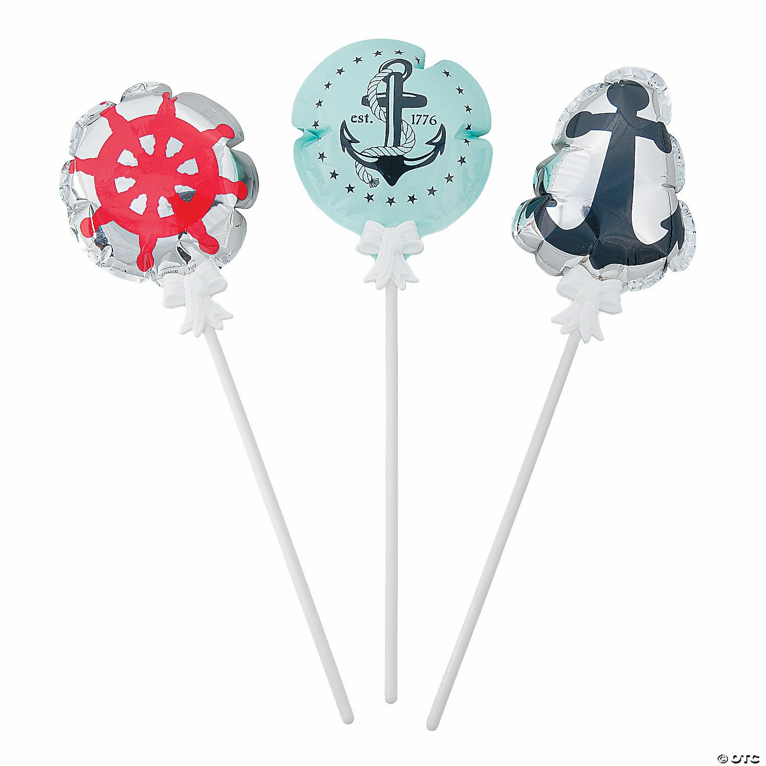 Who needs helium? Add these Self-Inflating Nautical Balloons to centerpieces or party gift bags as a decorating idea thatβs too cute to pass up! Great for nautical themed wedding receptions or sailor 1st birthday parties. Simply smash the packet inside the balloon to activate the inflating action. Includes 8″ plastic sticks. 4″ – 4 1/2″ Simple assembly required. Β© OTC