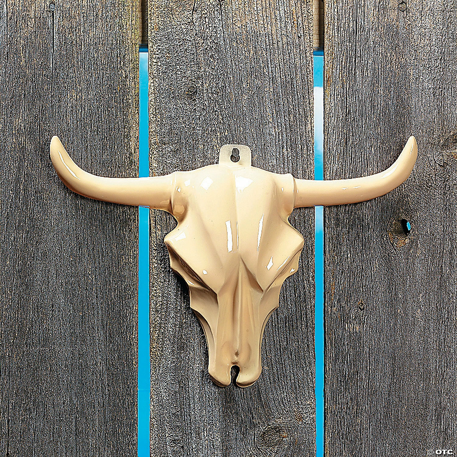 Steer Head Wall Decorations. Create an authentic Old West setting with these 12″ plastic steer heads! Fun to hang from walls or doors, these animal skulls will add a desert look to your next cowboy or cowgirl party! ยฉ OTC